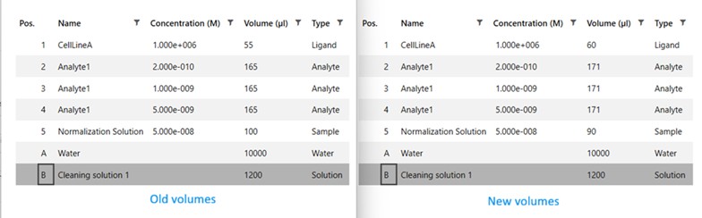 scIC methods have been updated to use more optimized injection commands. Main difference for customer is slightly increased cell and analyte volumes (approximately 5µl per run). Updates to injections can bring slight improvements to cell capture and stability, as well as the association injection quality.