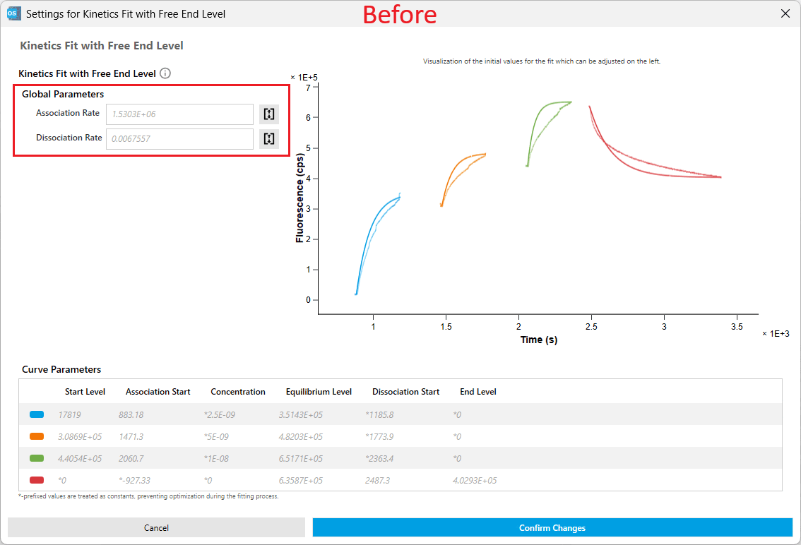 This feature provides users with a more streamlined scIC data analysis process in situations where only short dissociations could be measured. By limiting the fit to the assumption of full dissociation, users receive more accurate results without the need to fall back to manual data analysis.