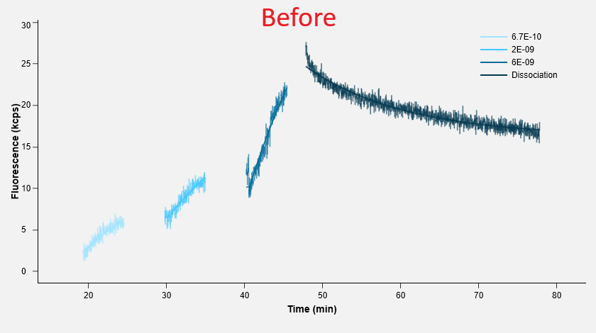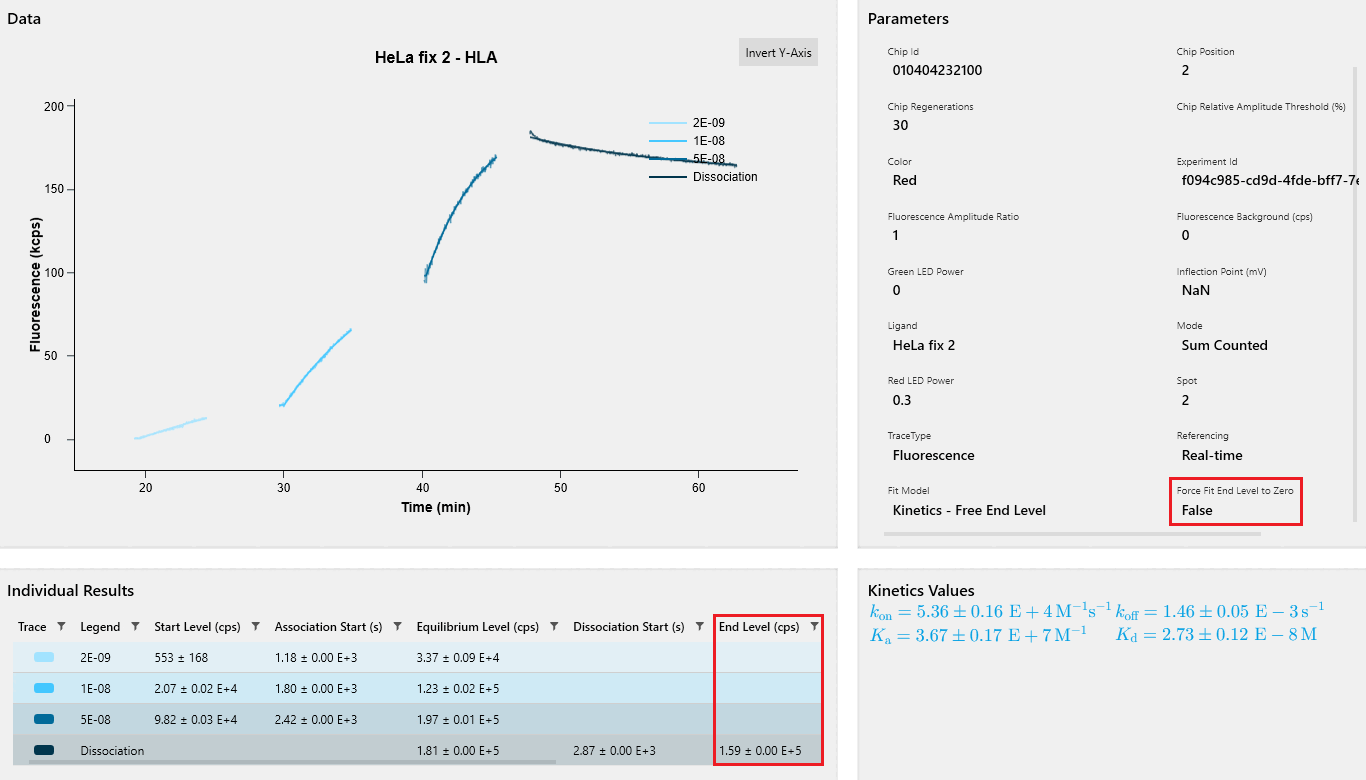 ! ATTENTION Forcing the fit end level to zero introduces bias into scIC kinetics fit results. If the assumption of complete dissociation does not hold, fit results will be negatively impacted. Use this feature with caution and only when confident in its applicability.